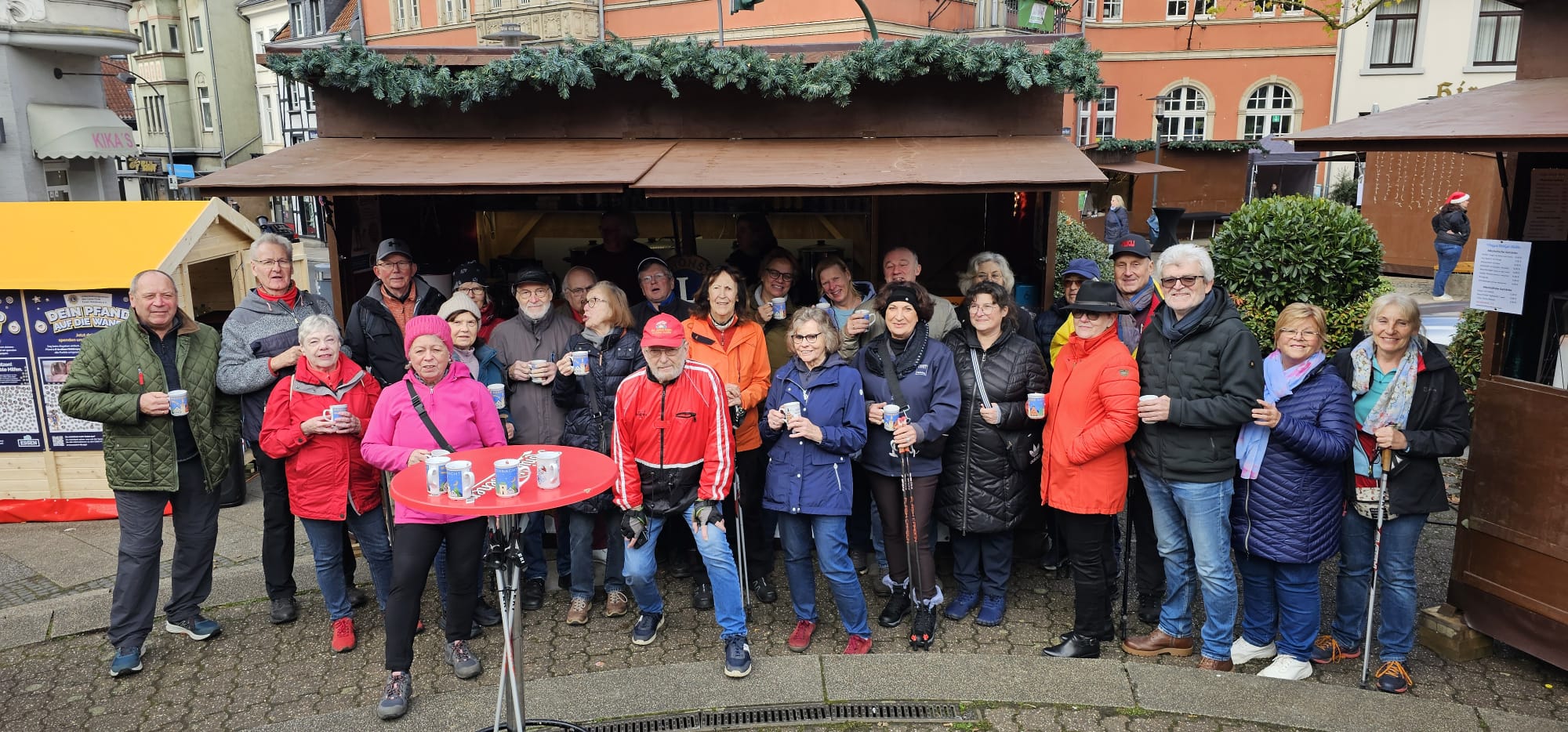 Jahr für Jahr besuchen die „Heidhauser Stockenten“ den Werdener Weihnachtsmarkt, so auch letzten Sonntag. Am Lions-Club-Stand unterbrachen sie ihre Runde, um wärmende Getränke mit einer Spende für den guten Zweck zu verbinden.